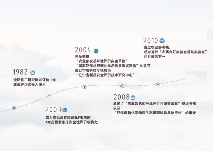2004年,先后獲得了"農(nóng)業(yè)部農(nóng)藥環(huán)境評價實驗單位"、"國家環(huán)??偩中禄瘜W品物質(zhì)測試資格"的認可,并被遼寧省科技廳掛牌為"遼寧省新藥安全評價技術(shù)研究中心";