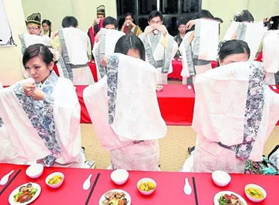 酒未喝完不上飯,一般情況下,在山西,主人敬的第一輪酒,客人不喝是不行的,否則被認(rèn)為看不起主人,客人無(wú)論酒量大小,要接酒痛快。山西人待客十分講究禮節(jié),主人要顯示熱情與隆重,故以滿為敬,客人要以手護(hù)盅杯表示致謝,主人勸酒,客人要端起酒杯來(lái)輕抿一口以示禮貌。