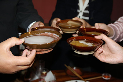 話說(shuō)山東的酒文化底蘊(yùn)最深厚,山東人民創(chuàng)造性地將孔夫子"以禮待人"、"誨人不倦"的思想反映在酒桌上,令人嘆為觀止。喝酒時(shí)間一般比較長(zhǎng),除了一些禮儀性的筵席控制在一個(gè)小時(shí)左右,一般酒席時(shí)間要超過(guò)3小時(shí),所以在山東除了酒量小的,一般人一場(chǎng)酒要喝個(gè)半斤八兩,等酒席結(jié)束后,大部分肯定是舌頭大了,步子歪了。