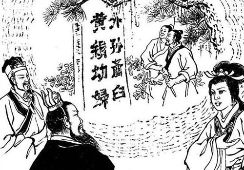 黃絹是有色的絲織品,色絲合起來(lái)是‘絕’字;幼婦是少女,少女合起來(lái)是‘妙’字;外孫是自己的女兒所生,女兒就是女子,女子合起來(lái)就是‘好’字;齏臼是用來(lái)?yè)v辛辣菜的,是受辛之器,受辛合起來(lái)是‘辤’(古體的辭字)字。這八個(gè)字隱含了‘絕妙好辭’之意。