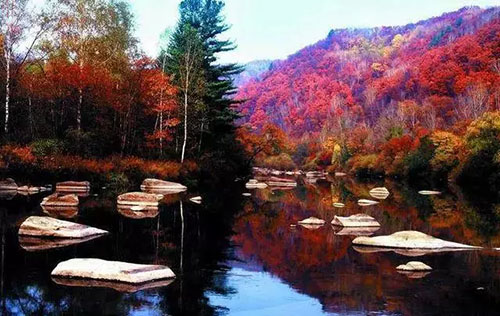 早年間叫的是"養(yǎng)胡溝",是深山老林中土匪藏身的地方。上個世紀末本桓線還沒修通,但已經(jīng)有大批的畫家追尋美景爬山涉水來這里寫生,人稱"畫家村"。每年的九月下旬始,輕霜慢慢浸透山野,構(gòu)成了一幅幅另人嘆為觀止的眩目"楓景"。