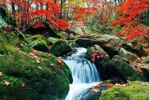 小山村少有人知。閑暇之際,置身秋之山林,心里滿是感動。行走山野,視野所及:民居側(cè)、山腳下、溪流畔、峽谷間、野徑旁,都被或火紅、或金黃、或濃綠、或枯白等各種顏色的山樹葉子和雜草染成斑斕色彩。