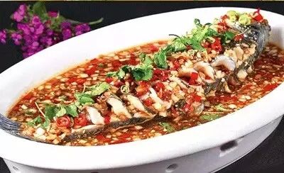 這道菜是根據(jù)經(jīng)典菜肴—饞嘴魚改良而來,圓蔥碎、野山椒碎、剁椒碎炒香后淋入蒸魚豉油、生抽和陳醋,熬好的味汁酸辣爽口,口味遠遠超過饞嘴魚。