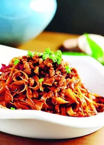 這是根據(jù)川菜演變而來的菜品,與麻婆豆腐比,這道菜口味更重。在炒制時,除了加入豆瓣醬,還加入刀口辣椒,使菜品口味更辣。