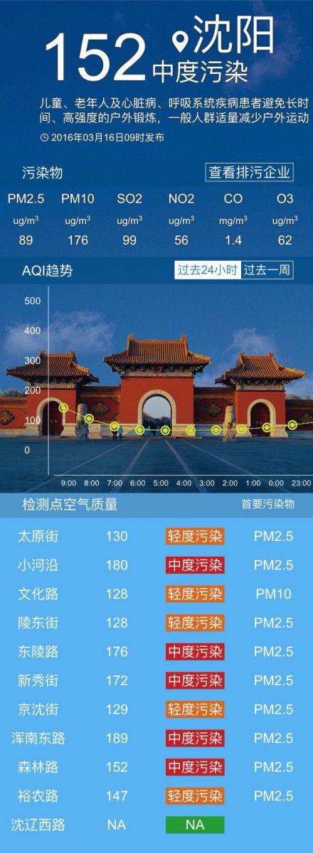 接下來共同關(guān)注沈陽未來幾天的具體天氣:今天白天溫度與昨天相似,最高氣溫為15℃,白天風(fēng)力仍然較大,5-6級西南風(fēng)。今天雖有陽光相伴,但是空氣質(zhì)量相對差了一點,為重度污染;夜間風(fēng)力稍弱,最低氣溫2℃。