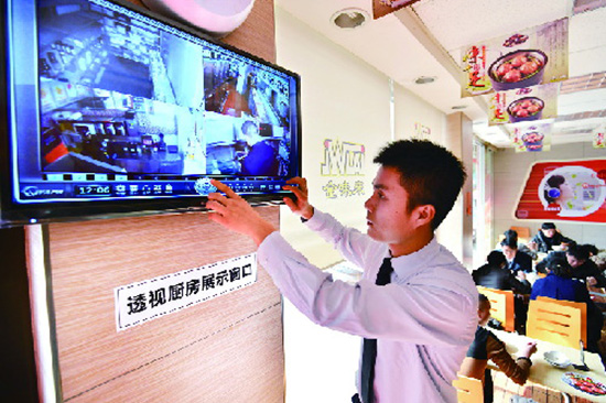在參加新浪新聞互動(dòng)直播時(shí),北京市食品藥品監(jiān)督管理局餐飲服務(wù)監(jiān)管處處長(zhǎng)劉國(guó)斌表示,目前來(lái)說(shuō),透明廚房還是一個(gè)倡導(dǎo)的措施,并非強(qiáng)制性的。北京還將進(jìn)一步推進(jìn)"食材的明廚亮灶"。