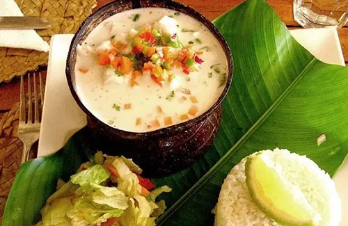將芋頭葉放入椰奶中煮熟制成的湯。芋頭葉等綠色蔬菜可以為身體補充必要的營養(yǎng)成分。