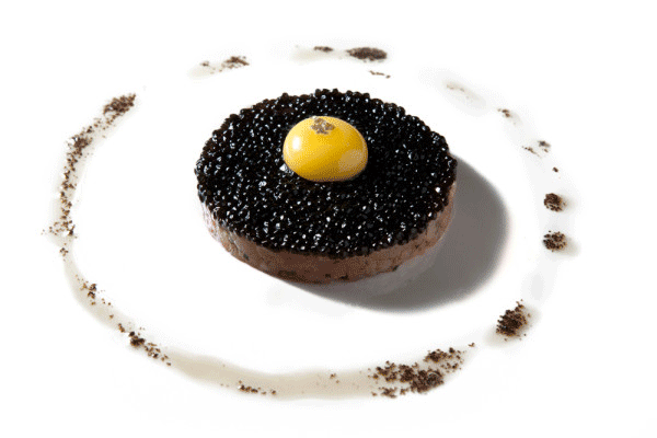 ↑↑↑黃色的蛋芯,黑色的松露,最下層是誘人的韃靼牛肉,對比鮮明的色彩,完美同心圓,強(qiáng)迫癥患者的福音。