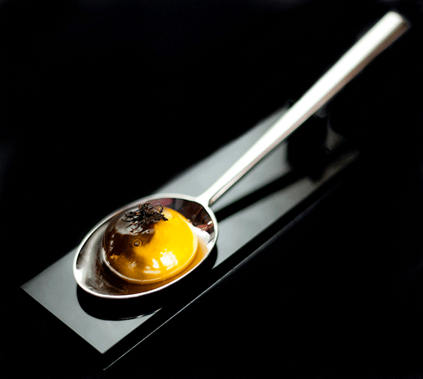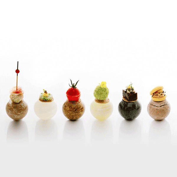 ↑↑↑前菜小品,六種不同菜式端坐在圓球上,小巧可愛,從左到右常溫、冷盤區(qū)分細(xì)致,每一口都是不同的體驗(yàn)。