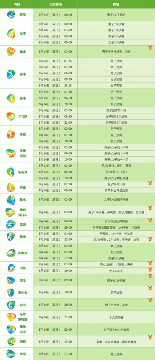 14日,做為倫敦奧運會該項目冠軍和世界紀錄保持者,孫楊或?qū)⒃谀凶?500米自由泳決賽迎來意大利名將帕爾特涅里的挑戰(zhàn)。此外,奧運會"三朝元老"董棟有望在男子蹦床項目實現(xiàn)衛(wèi)冕。