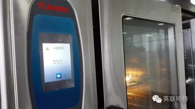 每天工作完畢,選擇自動清洗功能,先將內(nèi)膛溫度降到70℃以下(按冷卻鍵),并清理內(nèi)膛內(nèi)大的食物殘?jiān)ǚ乐苟氯潘щy),切斷電源后,每天用粘有清潔劑的抹布清潔不銹鋼面板,然后擦干清洗。