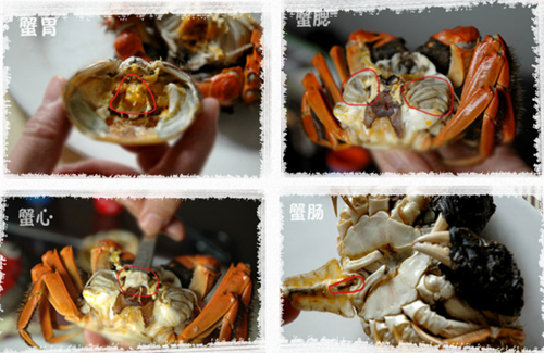 1、蟹胃、蟹腸、蟹腮、蟹心不宜吃,其中帶有細菌、病毒等致病微生物;