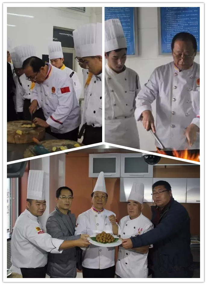 劉敬賢大師走進實訓課堂,親自指導學生刀工技法及烹調技藝,叮囑同學們學習廚藝要有耐心、恒心,掌握技巧,反復練習。劉敬賢大師親自為2015級敬賢廚藝西餐班演示扒素魚翅、干炸丸子、?大蝦、扒白菜、蔥燒遼參五道經典名菜。同學們觀摩了大師的經典名菜,品嘗了大師親手制作的菜品,贊嘆不已。同學們得到劉敬賢大師的技藝真?zhèn)?,收獲很大,紛紛表示希望學校能夠為他們創(chuàng)造更多的名師進校活動。