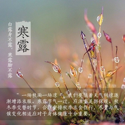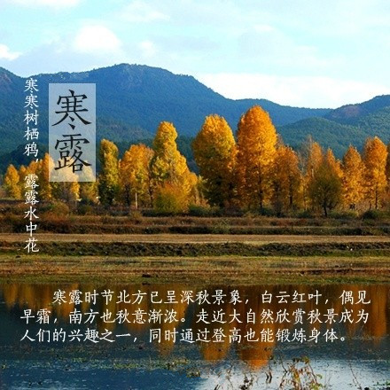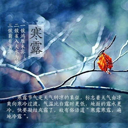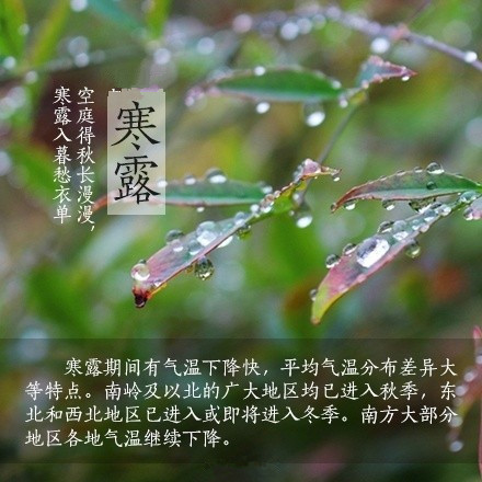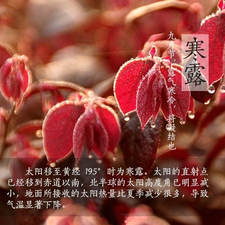 今日4時(shí)33分,太陽(yáng)達(dá)到黃經(jīng)195度 ,寒露至,露氣寒冷,深秋節(jié)令,沈陽(yáng)最低氣溫已經(jīng)跌到零度,看來(lái)冬天真的離我們不遠(yuǎn)了;北方呈深秋景象,白云紅葉,偶見(jiàn)早霜;寒露節(jié)氣是秋季的第五個(gè)節(jié)氣,寒露意味著氣候由涼爽到寒冷的轉(zhuǎn)變,氣溫比白露時(shí)更低,地面的露水更冷, 快要凝結(jié)成霜,在此沈陽(yáng)東方和利廚業(yè)有限公司提醒大家要注意保暖,小心著涼。