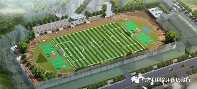 第二運(yùn)動(dòng)區(qū):一個(gè)標(biāo)準(zhǔn)足球場(chǎng)、一個(gè)容納15塊羽毛球場(chǎng)、兩個(gè)排球場(chǎng)、一個(gè)籃球場(chǎng)、30張乒乓球桌大型風(fēng)雨操場(chǎng)。