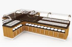 自助餐臺的選擇在自助餐廳的設計中也是非常重要的一部分,如何選擇和設計才能夠在向顧客展現更多自家豐富多樣的美味菜肴,如何擺放才能讓前來就餐的顧客充分感受到餐廳里輕松自由的用餐氛圍的同時,與整間自助餐廳的空間布局配合的相得益彰,不破壞原有的空間設計。