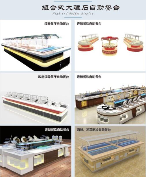 東方和利為餐廳、企事業(yè)單位食堂、連鎖餐飲等自助餐廳場所提供各種類型的高端大理石自助餐臺,各種大理石臺面材質均可選擇。各功能單元包括:涼菜制冷熱菜保溫、海鮮制冷、米飯自取、湯勺碗筷、碗碟倉等,各單元可自由組合。東方和利可依據餐廳整體環(huán)境,空間尺寸既定菜式和最大進餐人數,進行合理的規(guī)劃設計,設計靈活,可固定、可移動、可組合、做到功能齊全,造型合理,層次分明,線條流暢、風格多樣,材料實用。既實用、耐用且美觀時尚。