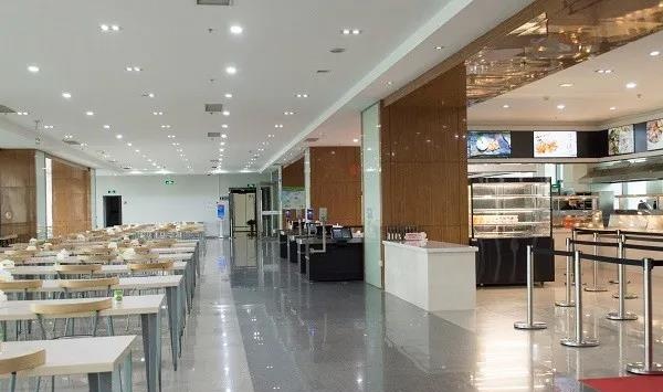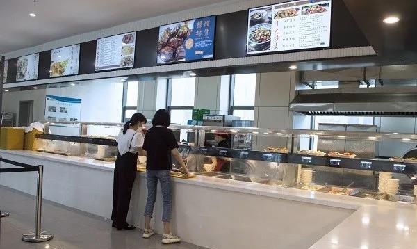 新食堂將選餐區(qū)設(shè)置成2條"L字形"自選路線,共配備14臺智能備餐臺。