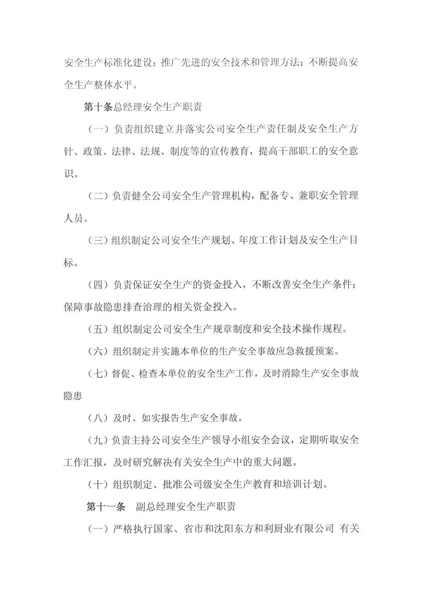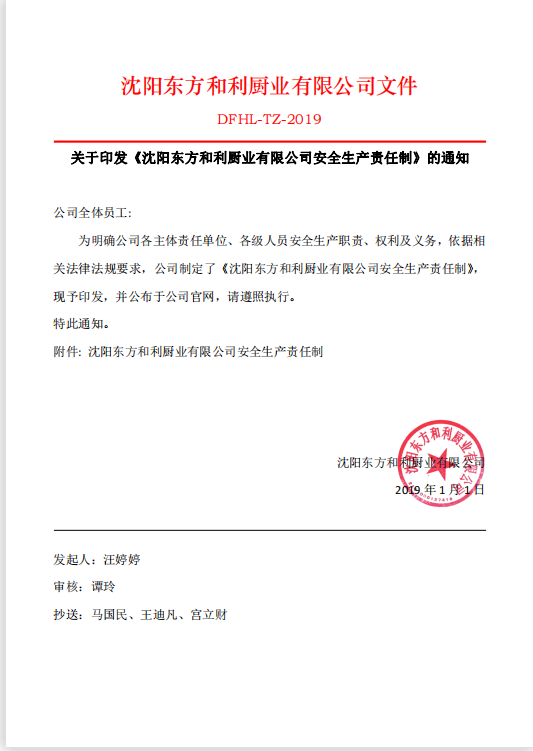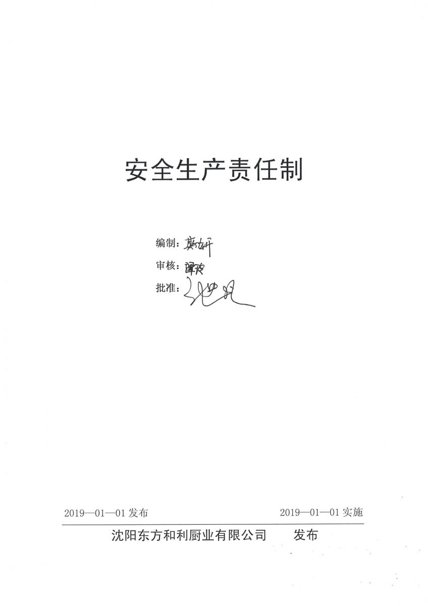 沈陽(yáng)東方和利廚業(yè)有限公司安全生產(chǎn)責(zé)任制