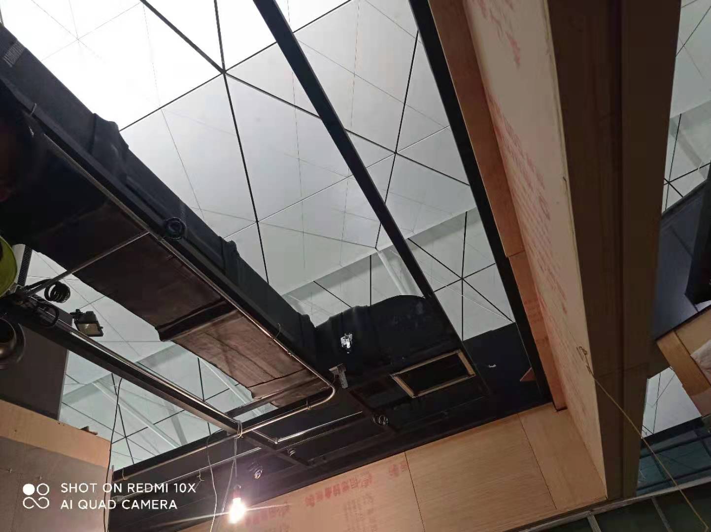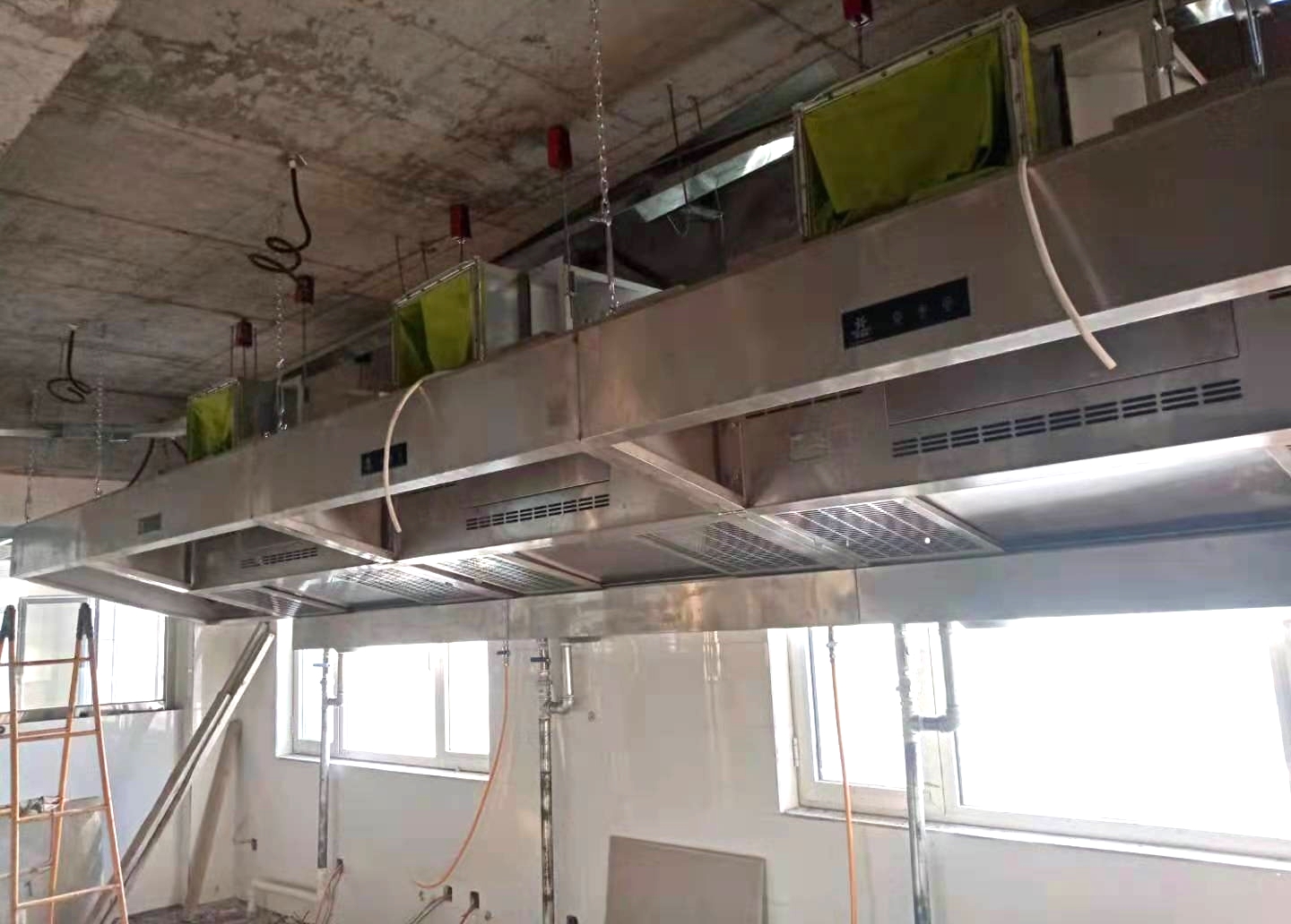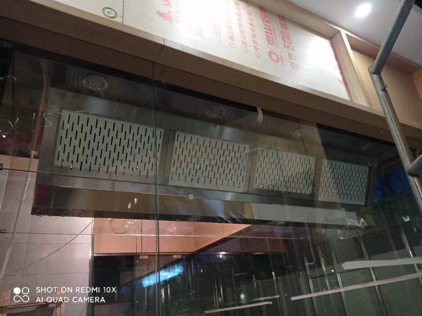 二樓風(fēng)機(jī)煙管安裝完畢,玻璃煙罩完成