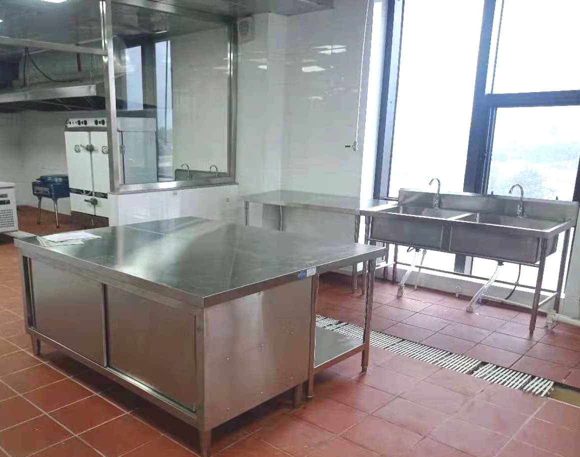 部分設(shè)備安裝完畢;異形工作臺(tái)、調(diào)料臺(tái)生產(chǎn)中