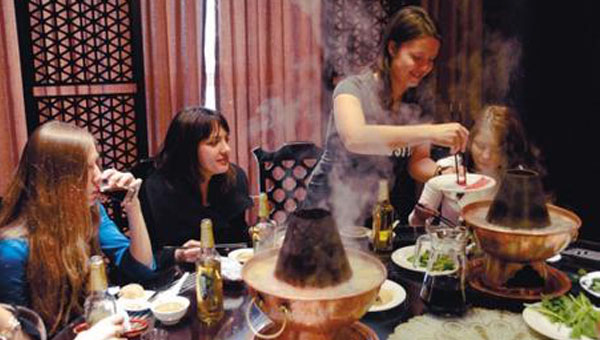 據(jù)說姐姐把老板娘帶回家嘗了一次中國火鍋(其實就是清水涮肉加蘸料),產(chǎn)生了神奇的效果。從此每隔幾天,老板娘都會自覺帶著切好的羊肉片準(zhǔn)時出現(xiàn)在姐姐家樓下,滿面笑容地等著吃火鍋。