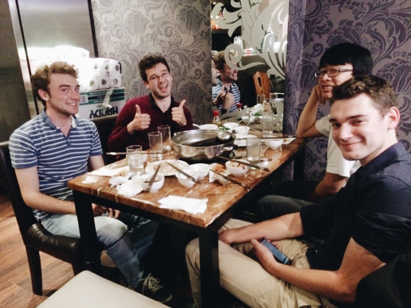 全家摩拳擦掌等著看新姑爺出丑,看著那一大包青花椒倒到全紅的鍋里,我為老公捏了一把汗,第一口牛肉進(jìn)嘴他大呼"OMG it tastes amazing",然后開始了和我爹觥籌交錯并嘴不停蹄火鍋之旅……