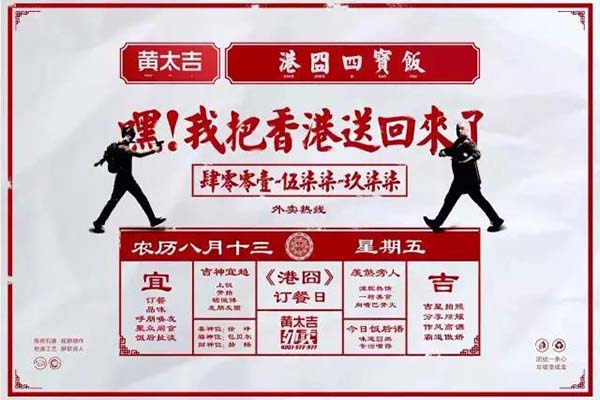 9月15日,黃太吉放出一張題為"嘿,我把香港送回來了"的海報,引起了大家的注意。