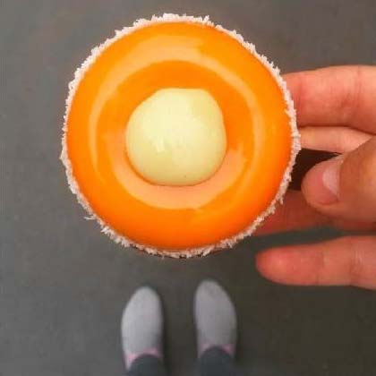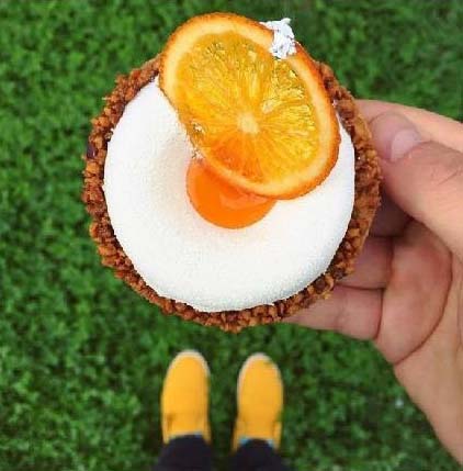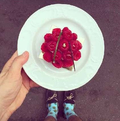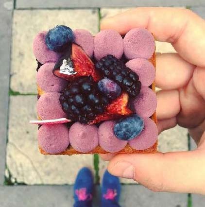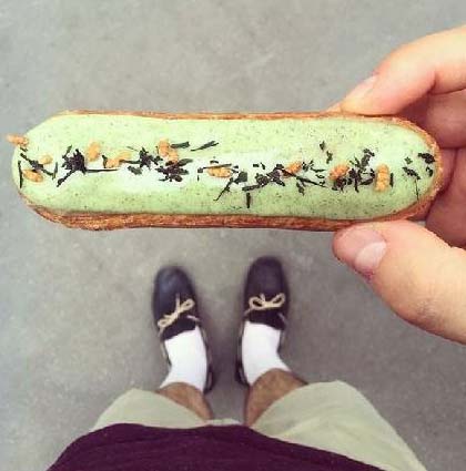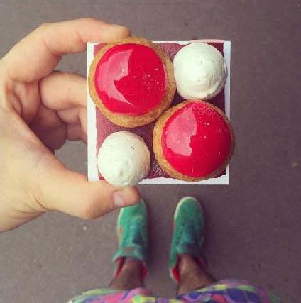有一天,他做完甜品準(zhǔn)備拍照時,突然發(fā)現(xiàn),今天的鞋子和甜品好配??;
