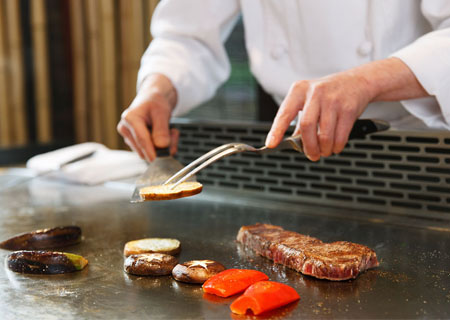 【鐵板】原是西式烹調(diào)方法;即指食物"走油"后,連同以洋蔥為主的香料料頭和汁醬,放入燒致極熱的鐵板中致熟和致令食物噴香的烹調(diào)方法。