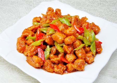 【溜(liū)】北方烹調(diào)術(shù)語,近乎粵菜的"打芡(qiàn)",即酸甜的汁水用生粉勾芡令酥炸過的食物滑嫩可口的烹調(diào)方法。