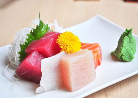【刺身】原是曰本料理的做法,原指生食肉片,經(jīng)中國菜引用指將鮮活的水產(chǎn)或海產(chǎn)去鱗凈血,薄切成片,滴入檸檬汁,蘸上曰本芥(jiè)辣而吃的烹調(diào)方法。
